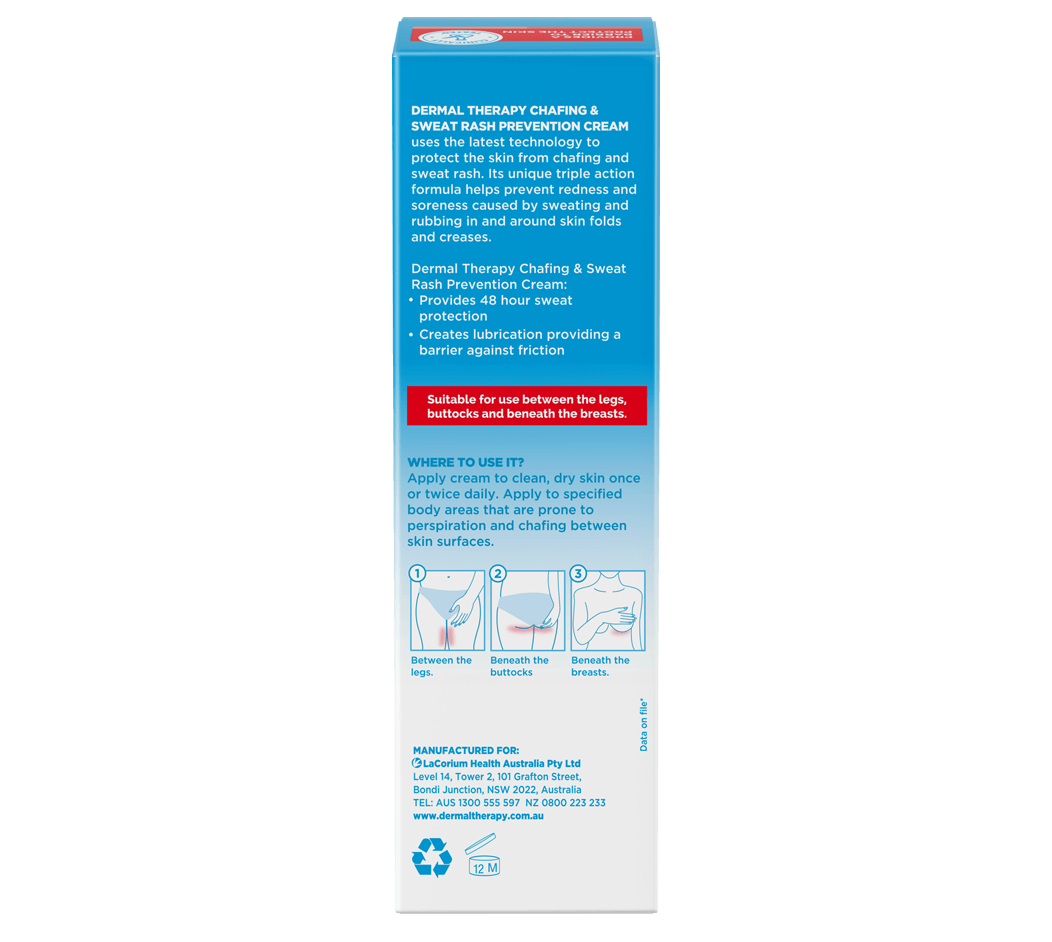 Dermal Therapy’s Chafing & Sweat Rash Prevention Cream is also designed to: