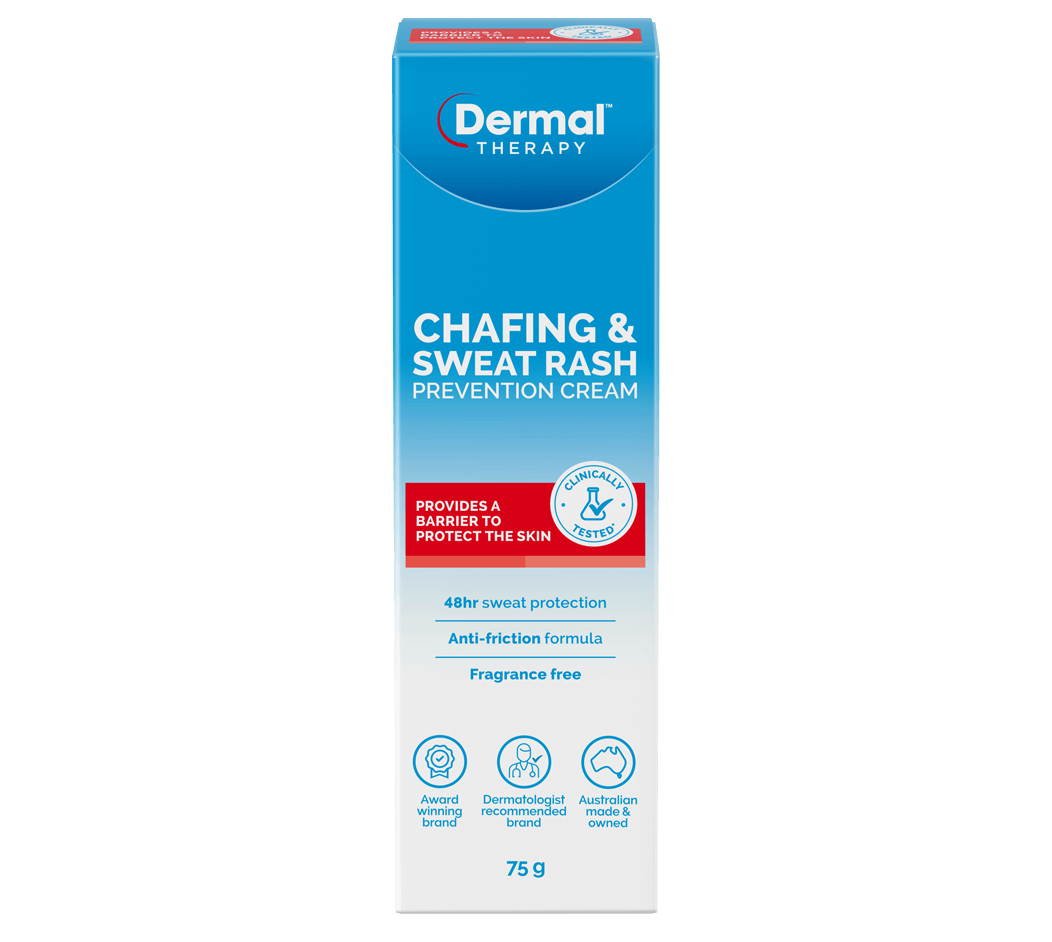 Dermal Therapy’s Chafing & Sweat Rash Prevention Cream is a triple action formula for long-lasting protection.