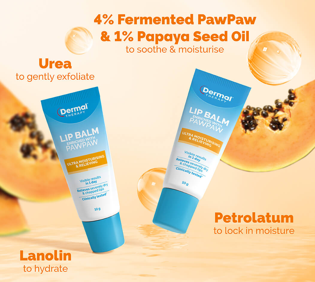 Whether you’re dealing with dry, chapped or cracked lips, Dermal Therapy Lip Balm with Pawpaw helps restore comfort and smoothness. It’s also the first lip balm to combine fermented Pawpaw and Papaya Seed Oil in a moisturising base for enhanced soothing action.