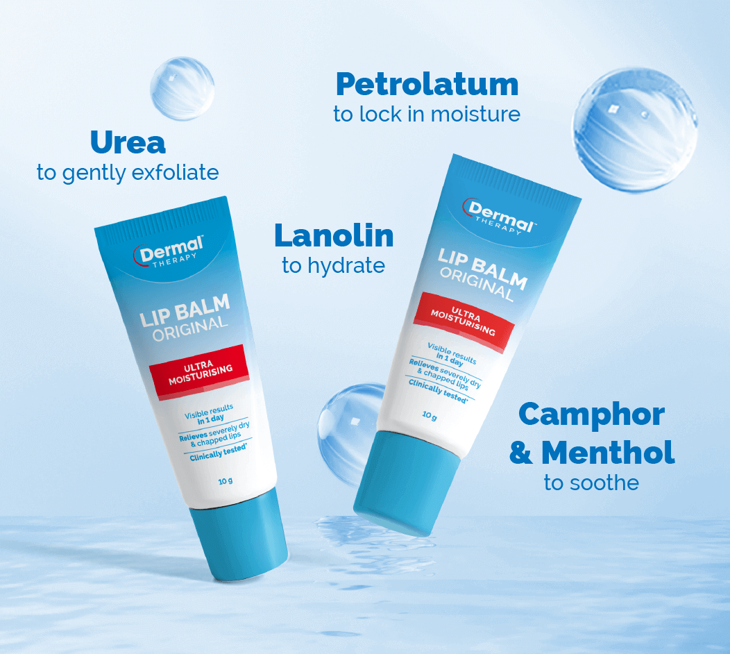 Dermal Therapy Lip Balm Original features a concentrated, emollient-rich blend of Urea, Lanolin, Cocoa Butter and Clove Oil to deeply hydrate, gently exfoliate, and form a long-lasting protective barrier, making it a trusted lip treatment and moisturiser for even the most severely dry lips.