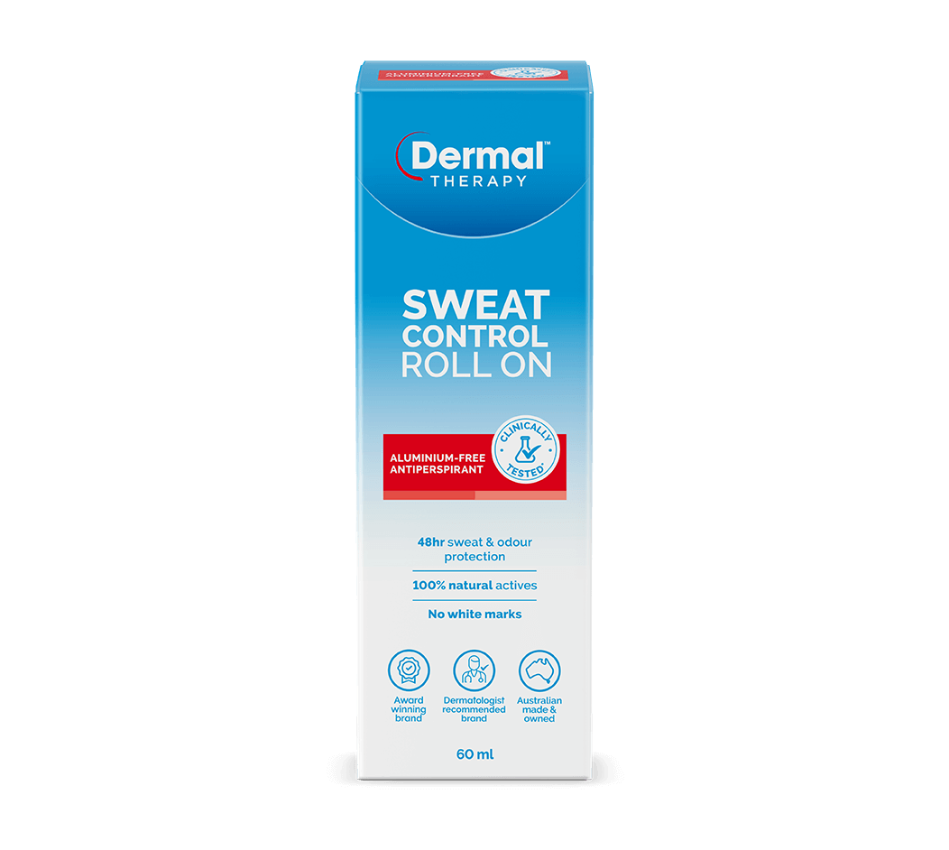 Say goodbye to excessive sweating and hello to Dermal Therapy Sweat Control Roll On — the new generation solution for heavy perspiration. Dermal Therapy’s Sweat Control Roll On is a clinical strength, aluminium-free antiperspirant roll on that helps keep heavy perspiration in check all day long and delivers odour relief for face, hands, and body.